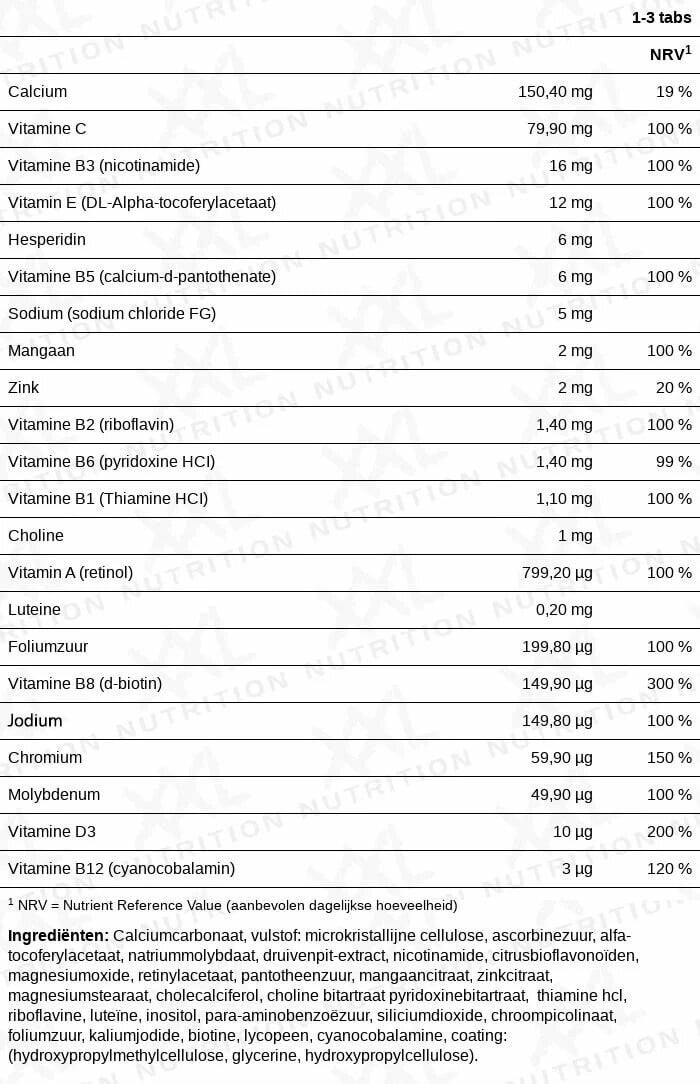 Daarom is het cruciaal om naast een gezonde voeding ook de juiste vitamines en mineralen binnen te krijgen. Zo kun je jezelf dag in, dag uit overtreffen zonder enige beperking! Vita-Mineral levert je maar liefst 12 vitamines, 7 mineralen en 3 extra toevoegingen. Noch kwaliteit EN kwantiteit is gespaard gebleven, wat betekent dat je de meest biologisch beschikbare vormen van micronutriënten in de juiste hoeveelheden binnen krijgt.