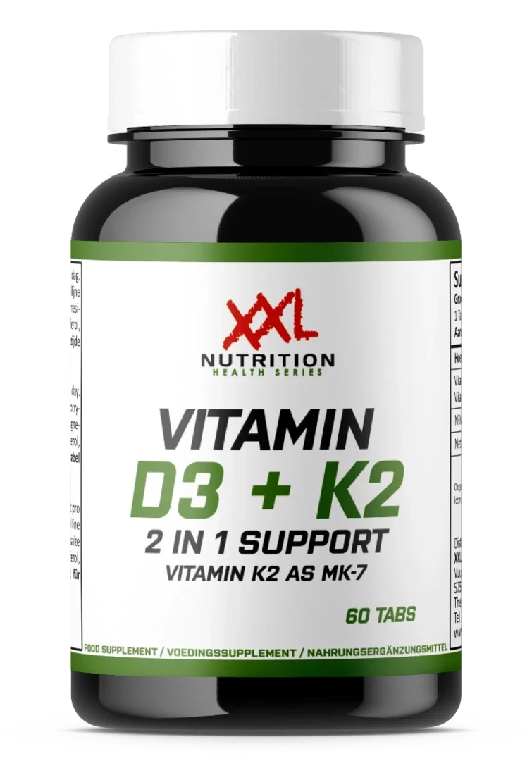 Vitamine D draagt onder andere bij tot een normale werking van de spieren en helpt het immuunsysteem. De voornaamste bronnen van Vitamine D zijn zonlicht en vette vis. Helaas schijnt de zon in Nederland niet genoeg om hier voldoende Vitamine D uit op te kunnen nemen, en zijn er grote hoeveelheden vette vis nodig om aan de juiste dosering te komen. Vitamine K draagt bij tot de instandhouding van normale botten en ondersteunt de bloedstolling. Om hier voldoende van uit je basisvoeding te halen zijn bijvoorbeeld grote hoeveelheden groene bladgroenten nodig, iets wat in praktijk moeilijk te realiseren is. Daarom heeft XXL Nutrition een krachtig combinatiesupplement gemaakt: met slechts één tablet Vitamin D3 + K2 krijg je al 500% Vitamine D3 (1000IU) en 60% Vitamine K2 van de aanbevolen dagelijkse hoeveelheid binnen.