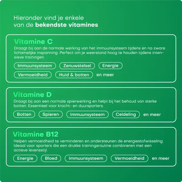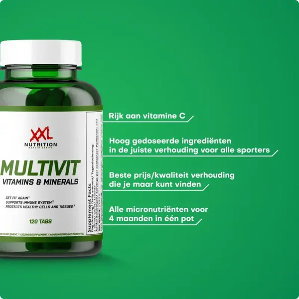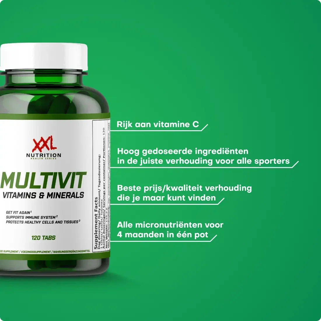 Sport jij veel of heb je gewoon een druk leven? Dan kan het soms lastig zijn om voldoende vitamines en mineralen binnen te krijgen. Gezond eten is natuurlijk de basis, maar als je lichaam wat meer nodig heeft, kan Multivit een mooie aanvulling zijn! Het bevat verschillende vitamines, zoals vitamine A en B12, en mineralen als calcium, ijzer, chroom en zink – alles in één tablet. Multivit is speciaal afgestemd op sporters en dekt je dagelijkse behoefte aan vitamines en mineralen. En ook niet onbelangrijk: Multivit is helemaal plantaardig, dus ook perfect voor veganisten.