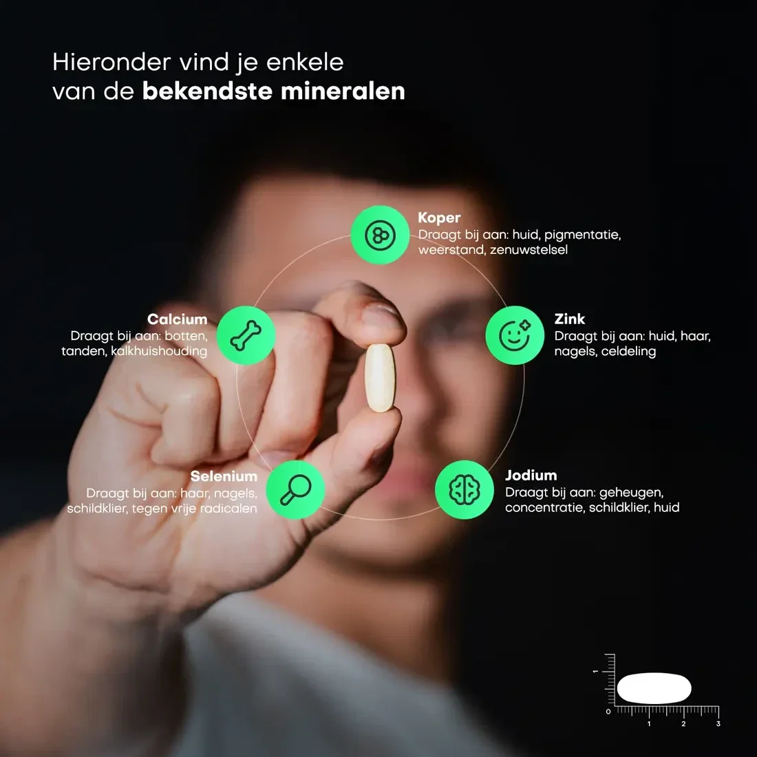 Waarschuwingen: De aanbevolen dagelijkse inname niet overschrijden. Op een droge en koele plaats bewaren. Voedingssupplementen zijn geen vervanging van een gevarieerde en evenwichtige voeding en een gezonde levensstijl. Buiten bereik van kinderen houden.